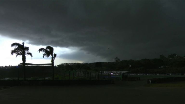 In the afternoon, Interlagos suddenly became extremely dark due to storm clouds and strong winds.