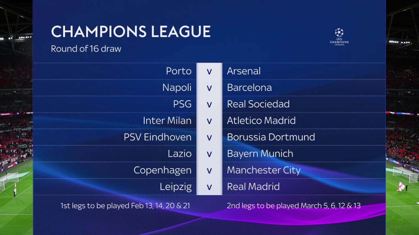 As the first legs of the competition are scheduled to take place on February 13, 14, 20, and 21, and the second legs on March 5, 6, 12, and 13, football enthusiasts around the world eagerly await these enticing fixtures, eagerly anticipating the passion, drama, and brilliance that the Champions League never fails to deliver. May the best teams prevail and make their mark on this prestigious tournament.