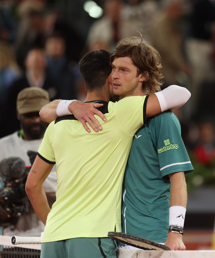 In what was a stunning turn of events at the Madrid Open, Carlos Alcaraz, the 20-year-old Spanish sensation, had his hopes of securing a hat-trick of titles dashed by Andrey Rublev. The match, held under the roof of the Manolo Santana Stadium, saw seventh seed Rublev claim a remarkable victory over Alcaraz with a final score of 4-6, 6-3, 6-2. Alcaraz, initially backed by a fervent home crowd that included notable figures like David Villa, Raul, and Luka Modric, found himself outplayed as Rublev strategically utilized aggressive play, striking 30 winners and frequently advancing inside the baseline to unsettle his opponent.