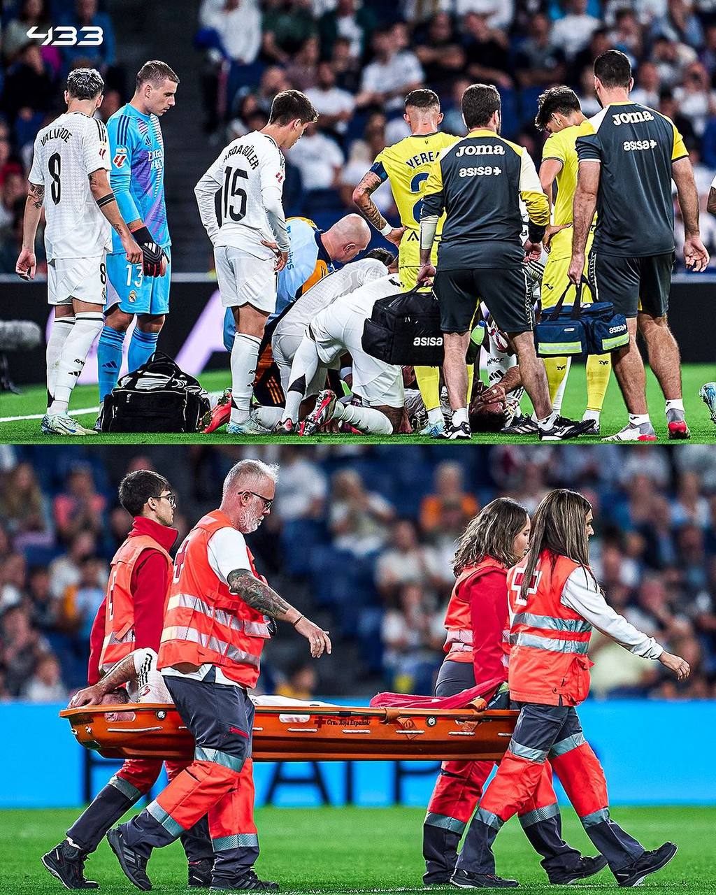 Carvajal’s injury was particularly alarming, provoking distressing scenes within the iconic Santiago Bernabeu stadium. As he fell to the ground, an audible scream of pain escaped him, underscoring the severity of the moment. Overcome with emotion, the right-back attempted to conceal his tears with his shirt while lying on the turf, a heartbreaking sight for fans and teammates alike. Medical personnel rushed to his aid, and he was eventually transported off the field on a stretcher, leaving the crowd anxious and concerned.