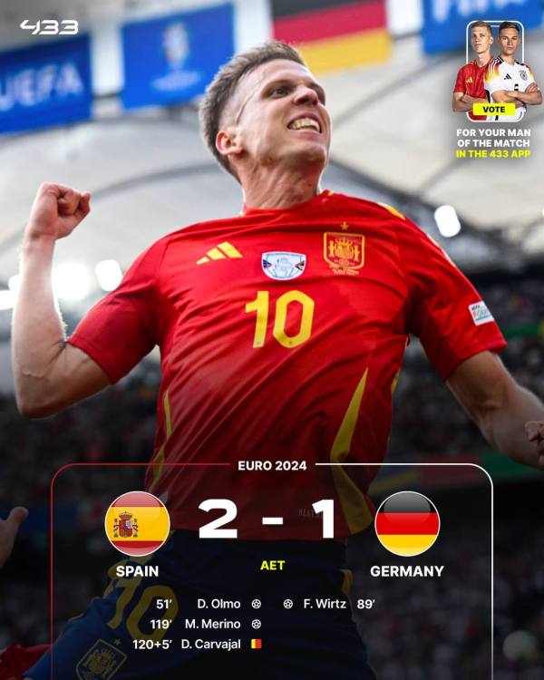Euro 2024: Spain are through to the Semi-Finals after a 2-1 win against Host Nation, Germany in Extra Time